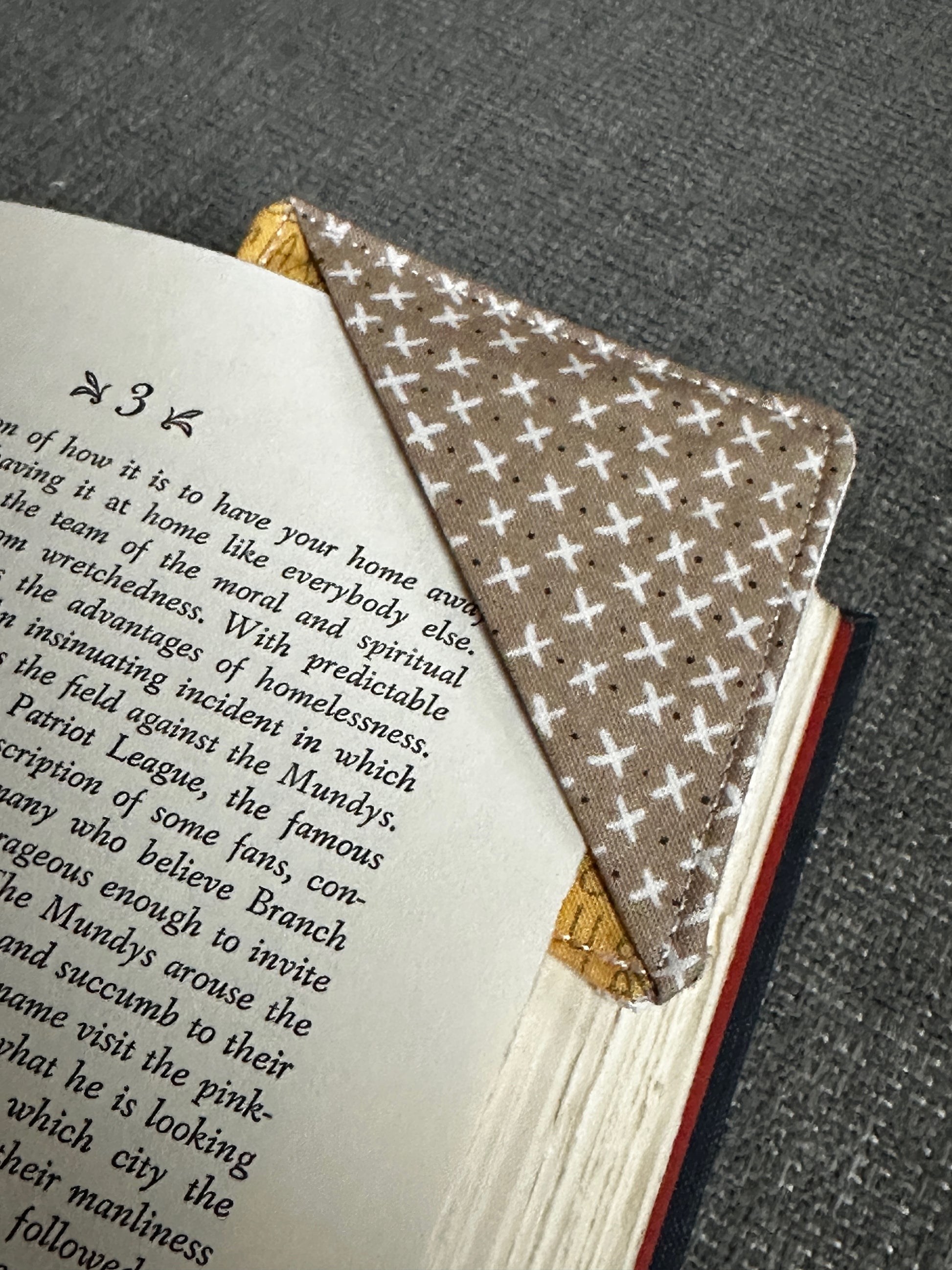 Corner Bookmark - Beige Fabric with Yellow Fabric with Dogs