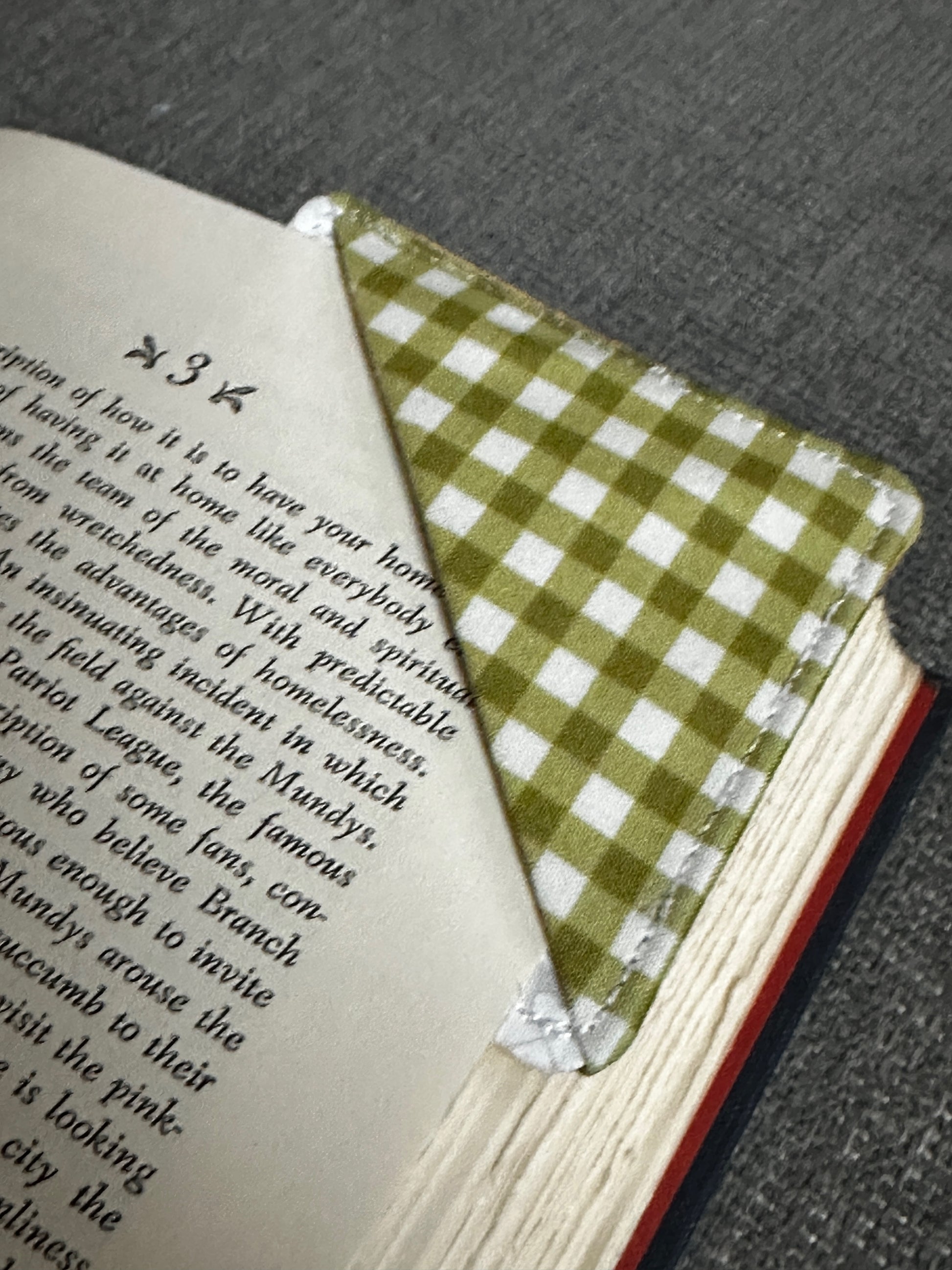 Corner Bookmark - Check Gingham Fabric with White Clover Fabric