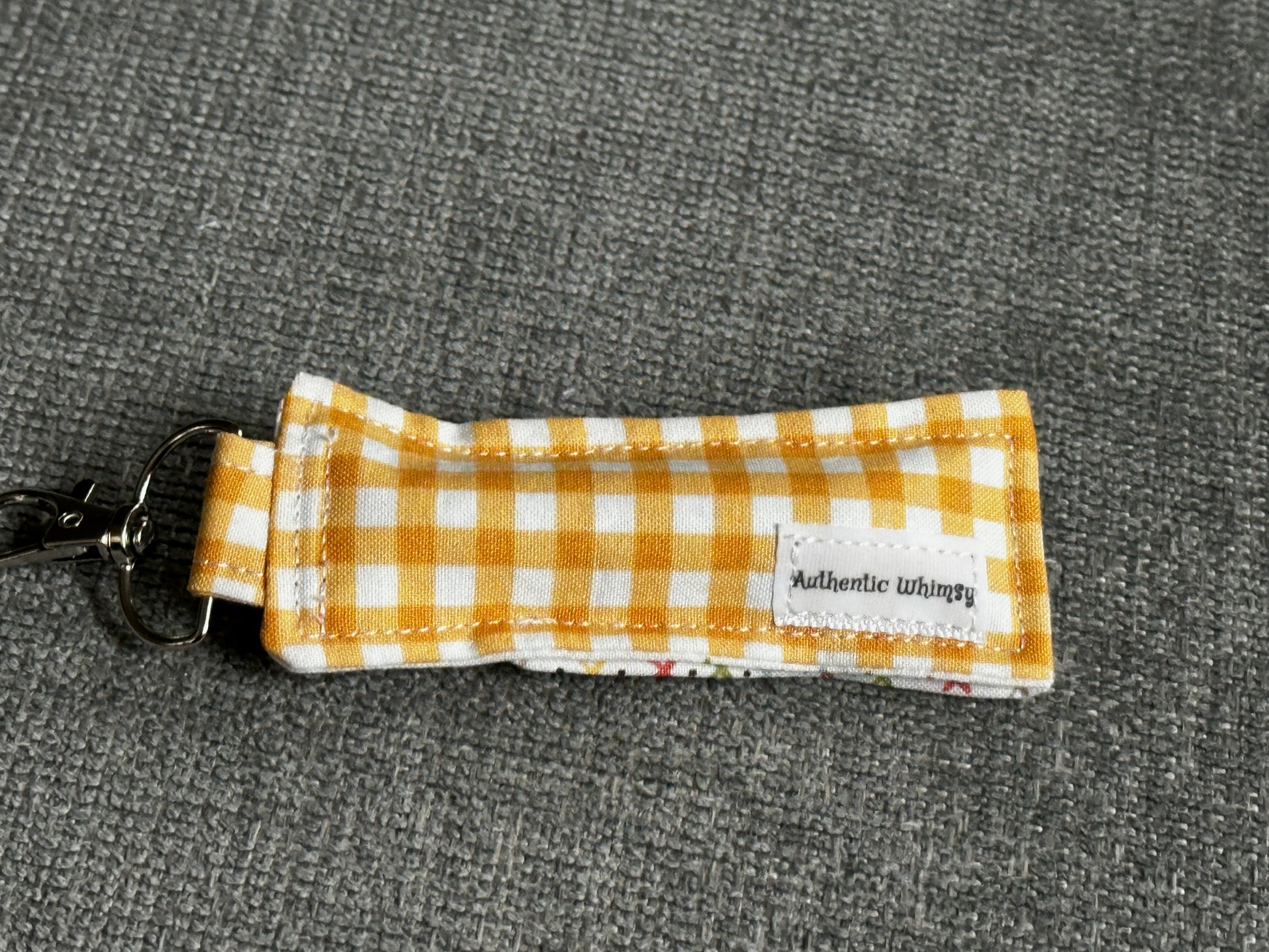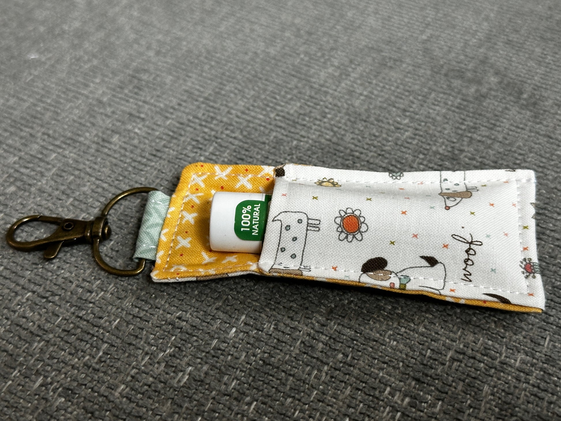 Keep your lip balm right where you need it — no more digging through the bottom of your bag. This handmade quilted lip balm holder clips easily onto your keys, purse, or backpack, keeping your favorite lip balm close at hand and protected in a soft, padded fabric sleeve. Thoughtfully stitched and finished with sturdy metal hardware, it blends charm, convenience, and everyday function — all with classic Authentic Whimsy charm.