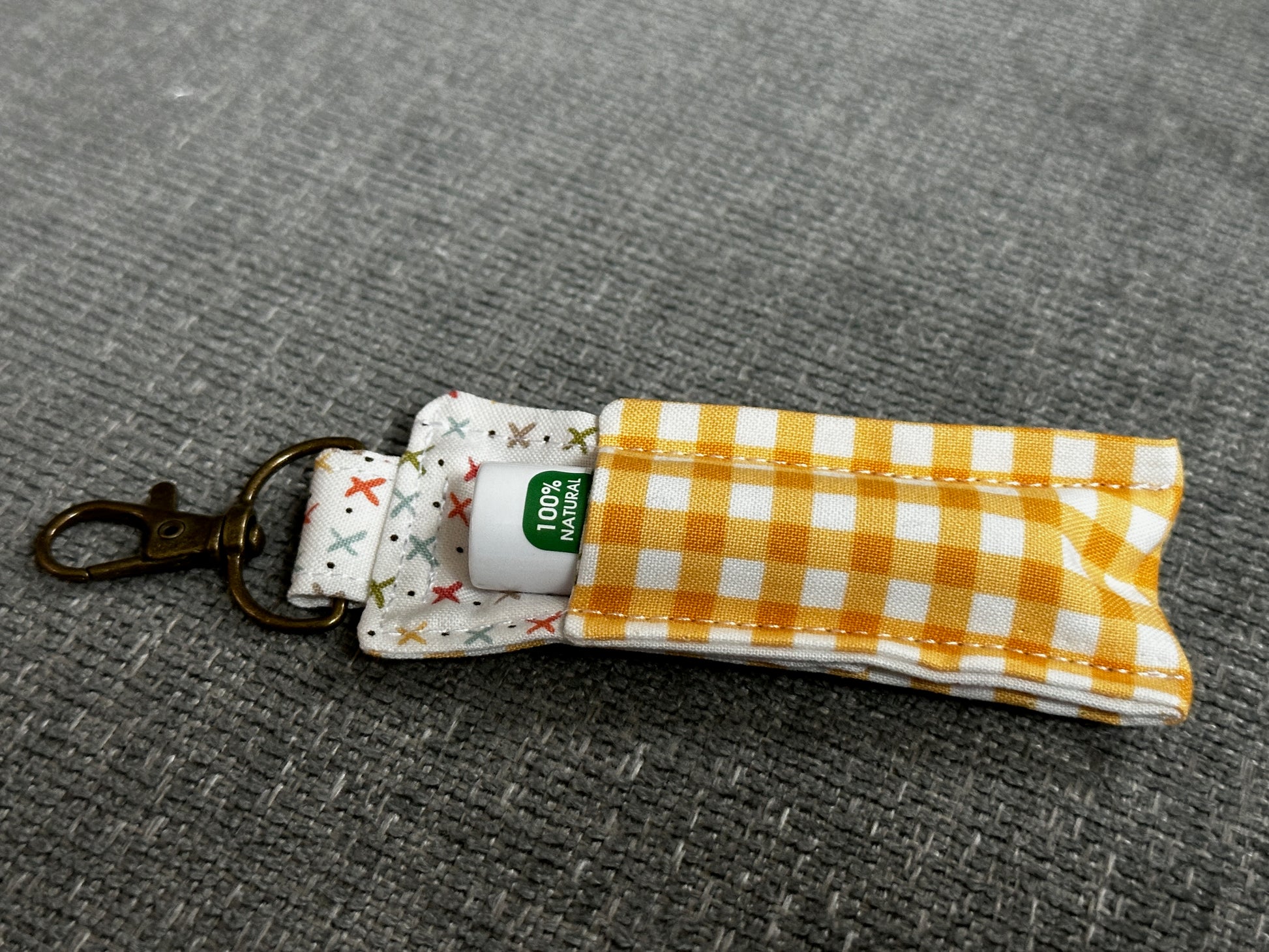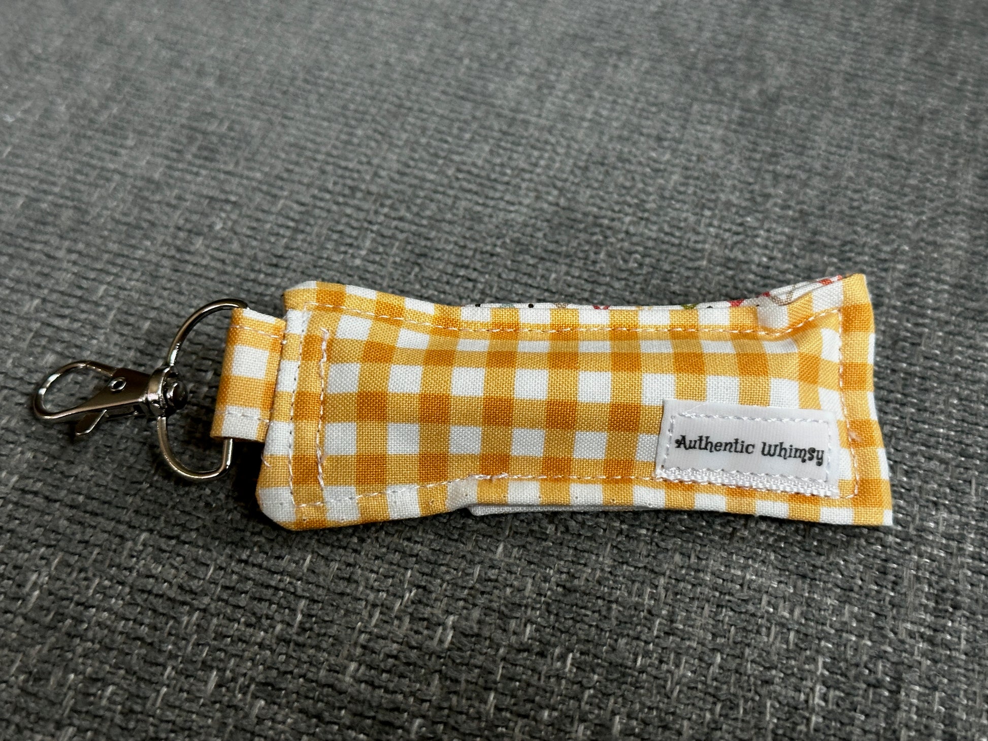 Lip Balm Holder - Yellow Gingham Fabric with White Interior